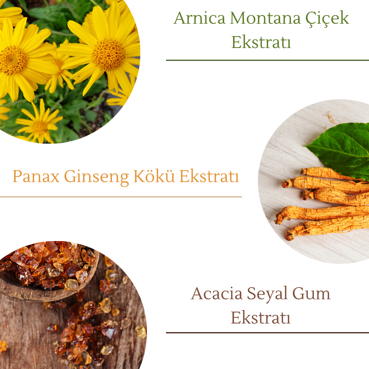 - Kore Ginsengi; Güçlü bir antioksidandır. Anti-aging özellikleriyle öne çıkar. Cilt elastikiyetini artırma ve hücre yenilenmesini teşvik edebilir.