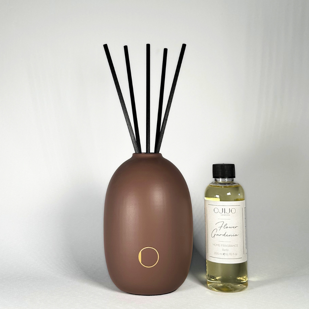 Çubuklu Oda Kokusu, Galaksi Koyu Kahverengi Stoneware Seramik Pot Flower Gardenia
