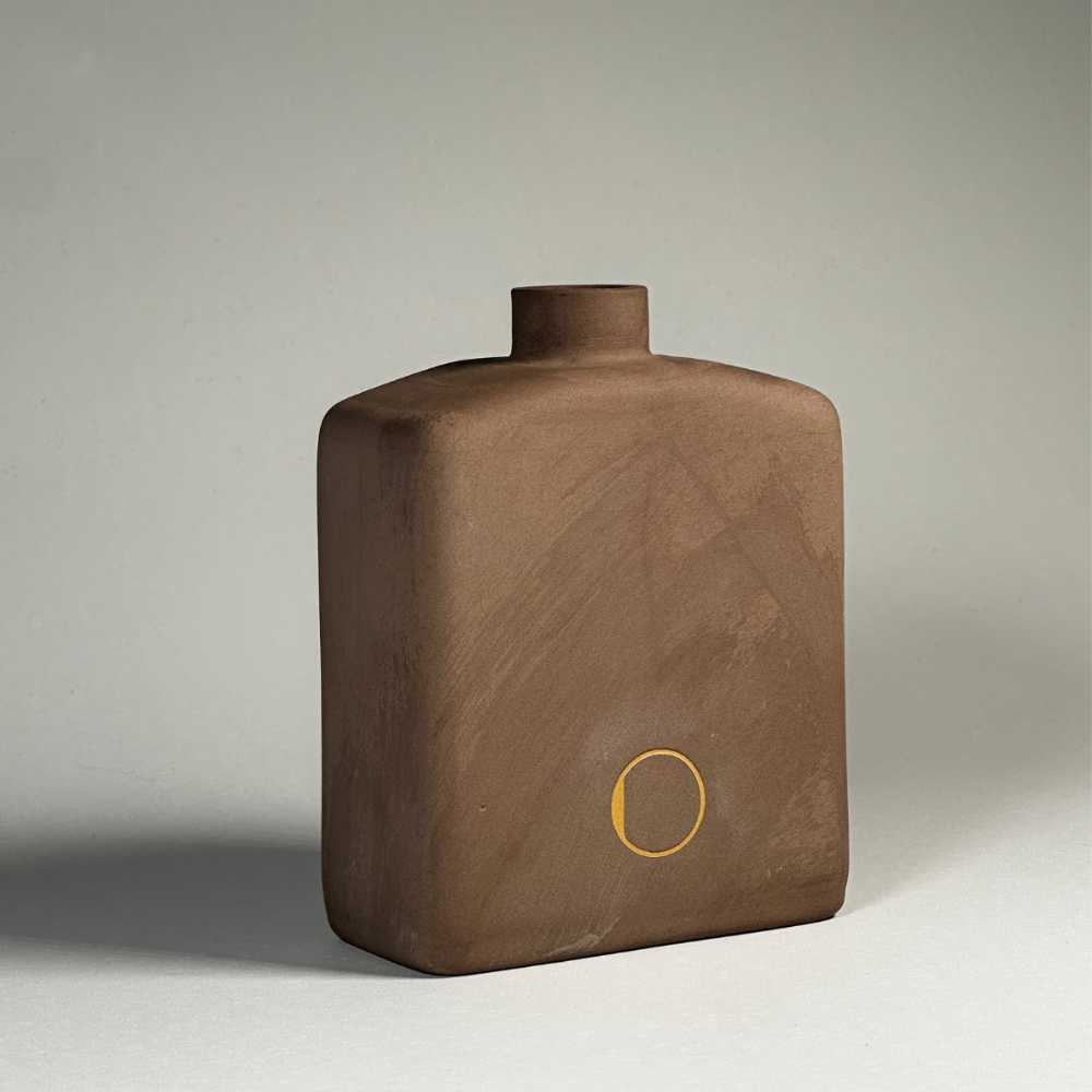 Çubuklu Oda Kokusu, Rekta Kahverengi Stoneware Seramik Pot