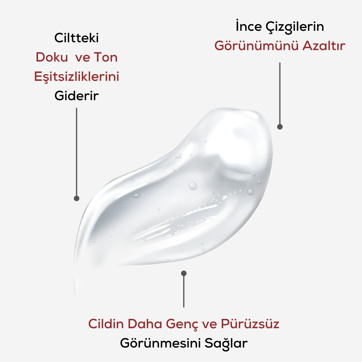 İçindekiler: Aqua, Glycerin, Propylene Glycol, Rosa Damascena Flower Extract, Punica Granatum Seed Extract, Panthenol, Hydroxypropyl Cyclodextrin, Xanthan Gum, PEG-40 Hydrogenated Castor Oil, Sodium PCA, Phenoxyethanol, Adenosine, Retinol, Ethylhexylglycerin, Sodium Benzoate, Potassium Sorbate.