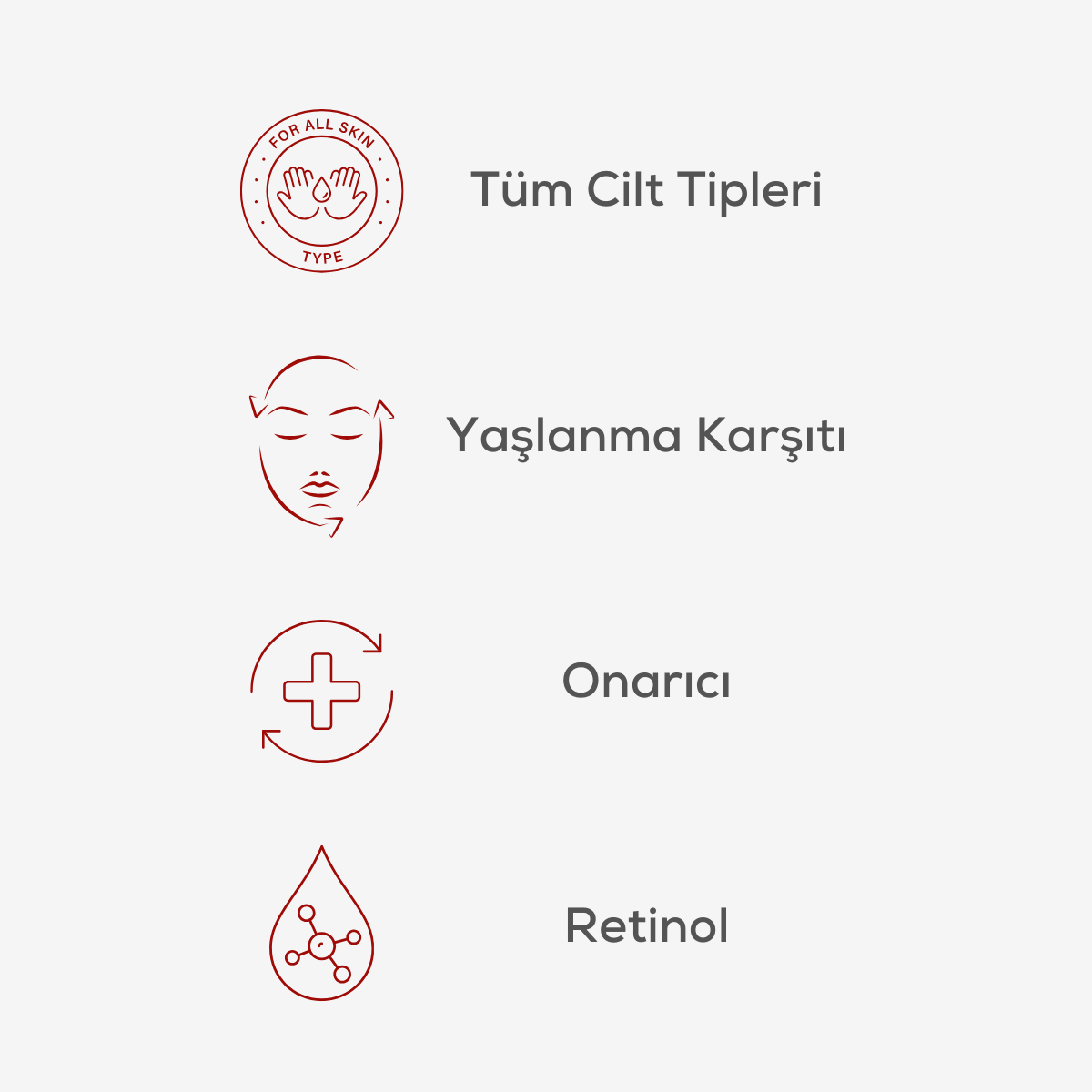 Uyarılar: Sadece haricen kullanılır. Hamilelerde ve hamilelik düşünenlerde kullanılmamalıdır. Tahriş olmuş cilde uygulamayınız ve cilt aşındırıcı etkisi olan ürünlerle birlikte kullanmayınız. Ürünün göz ile temasından kaçınınız ve göz ile teması durumunda bol su ile yıkayınız. Çocukların ulaşamayacağı yerlerde saklayınız. Kullanmadan önce olası istenmeyen yan etkileri ve tahrişi önlemek için ürünü cildin küçük bir kısmına uygulayınız. Hassasiyet oluşması durumunda Kırışıklık Karşıtı, Onarıcı Retinol (a Vitamini) Gece Serumu 25 Ml kullanmayı bırakınız ve dermatoloğunuza başvurunuz. Koruyucu kullansanız bile yoğun öğle güneşinden ve uzun süre güneşlenmekten kaçınınız.